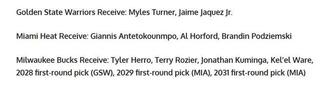 热火得到:字母哥+霍福德+波杰;